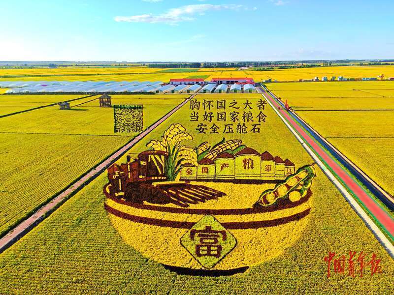 8月27日,黑龙江富锦万亩水稻公园,稻田画已进入最佳观赏期。中青报·中青网记者 杨雷/摄
